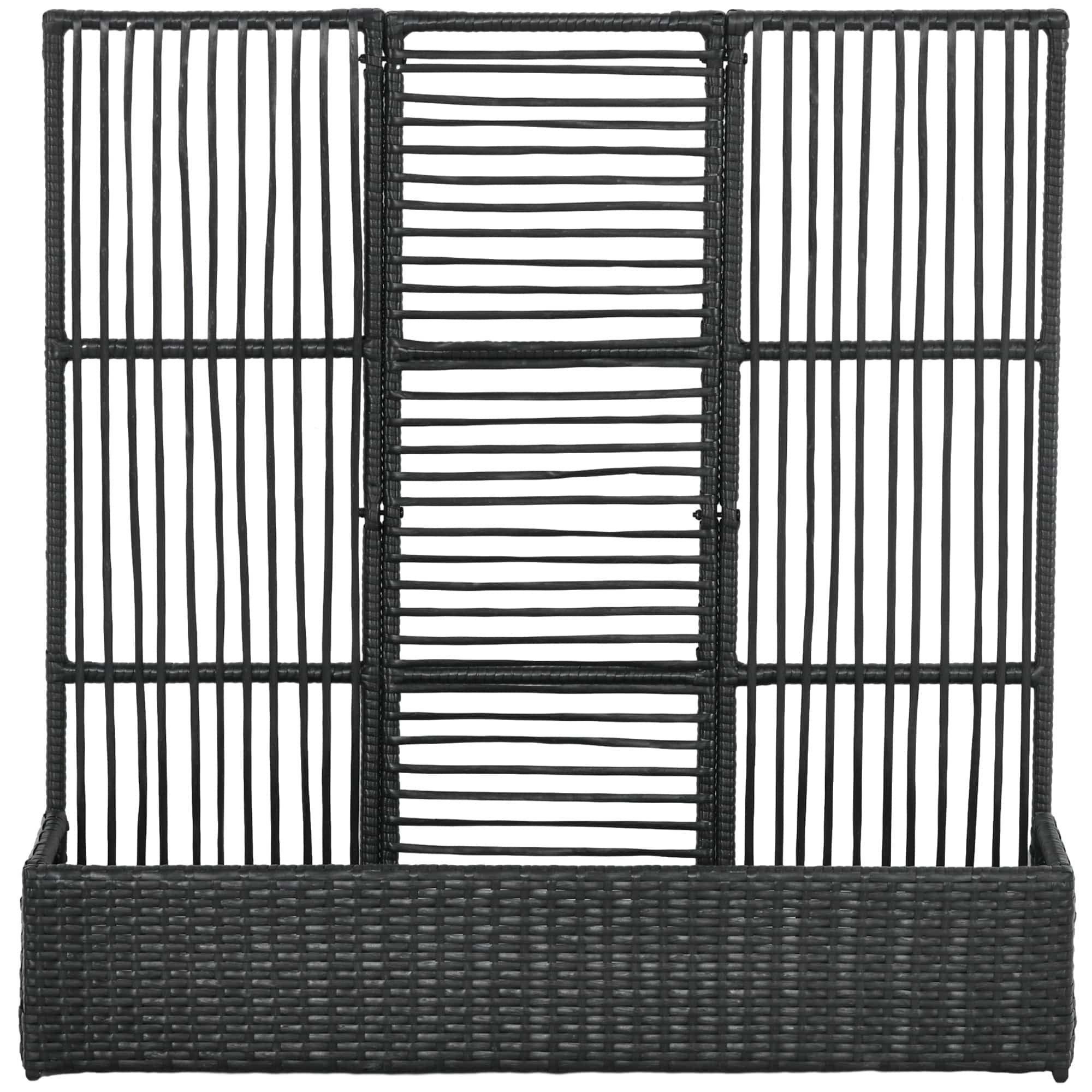 Blomsterkasse med espalier, vejrbestandig, polyrattan, 103 x 103 x 29 cm, sort